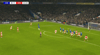 第83分钟,切尔西角球机会,加纳乔凌空抽射破门梅开二度,切尔西再追一球,2-3阿森纳。